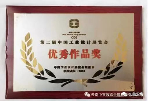 經(jīng)組委會評選,云南中宣液態(tài)金屬科技公司的液態(tài)金屬3D筆榮獲“第二屆中國工業(yè)設(shè)計展覽會優(yōu)秀作品獎”,云南省工業(yè)和信息化廳榮獲“第二屆中國工業(yè)設(shè)計展覽會優(yōu)秀搭建獎”。