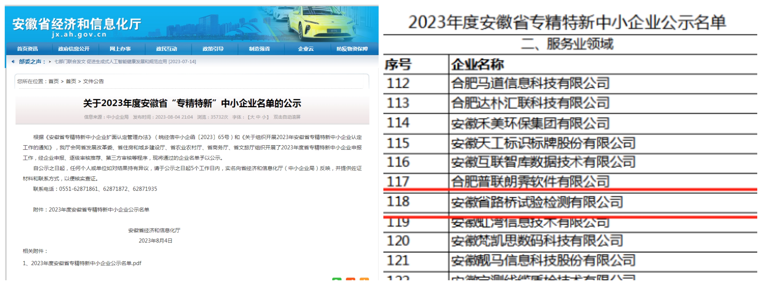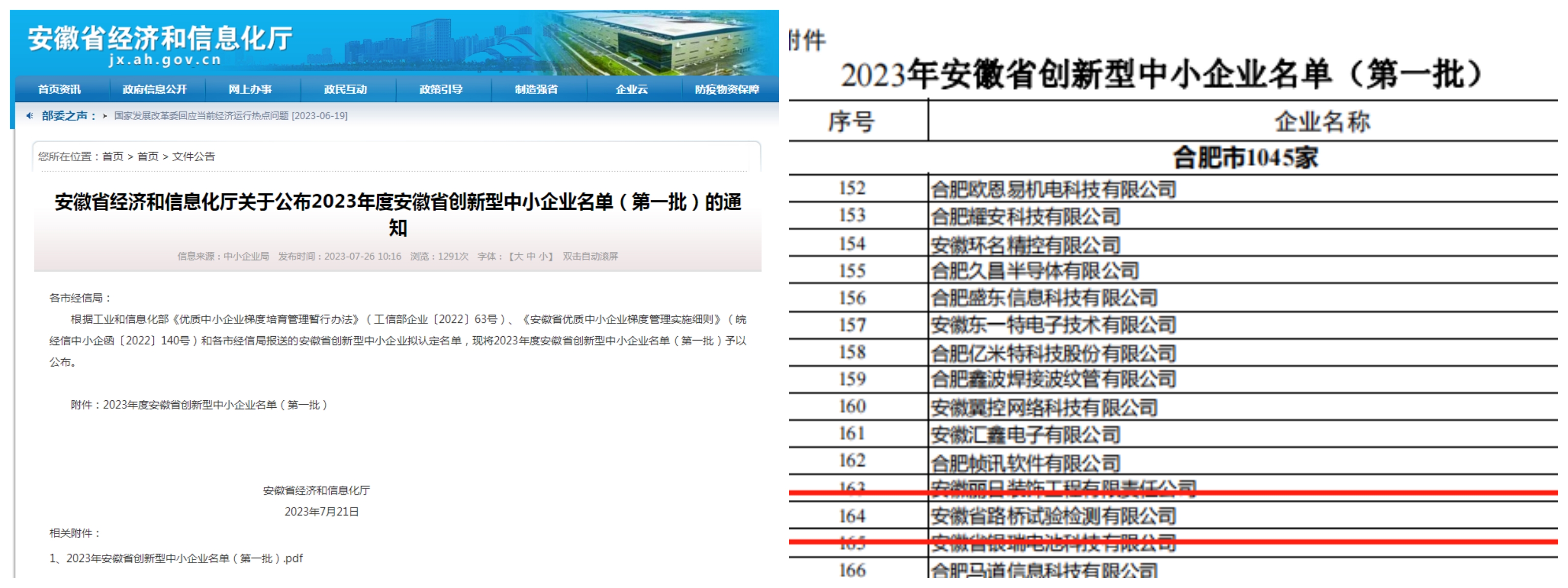 近日, 安徽省經(jīng)濟(jì)和信息化廳發(fā)布安徽省2023年度“創(chuàng)新型中小企業(yè)”名單(第一批)和 “專精特新中小企業(yè)”名單,安徽省路橋試驗檢測有限公司兩項申報均獲批入選。