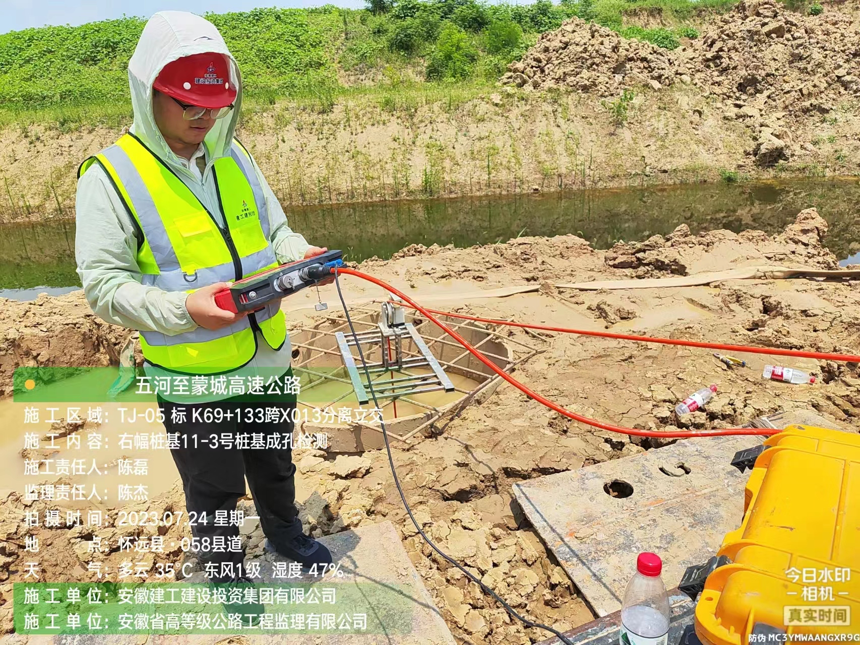 五河至蒙城高速公路項(xiàng)目檢測人員正在進(jìn)行成孔檢測