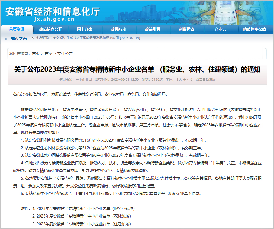 喜報(bào)!建工檢測及所屬兩家子公司榮獲2023年度安徽省 “專精特新”中小企業(yè)稱號(hào)