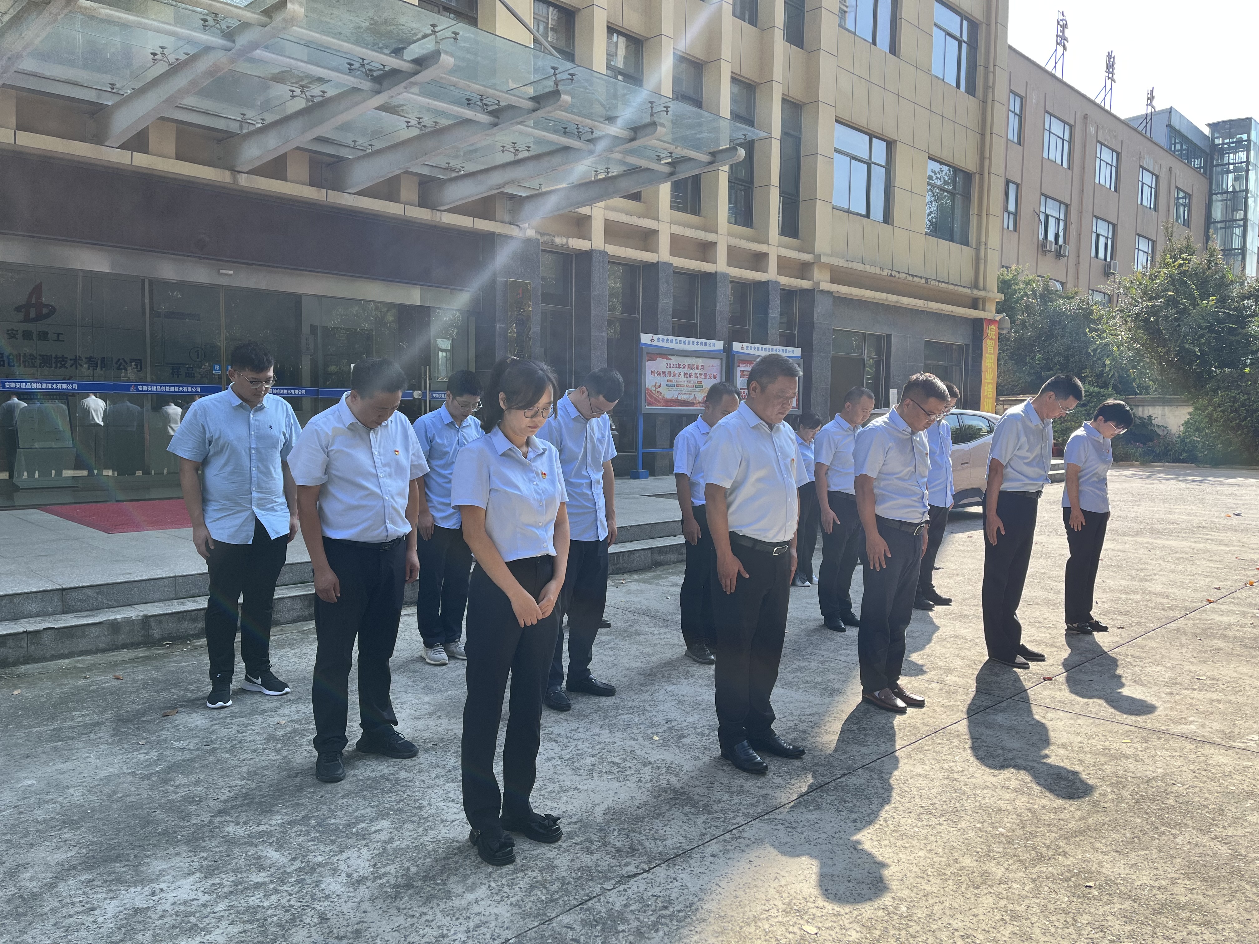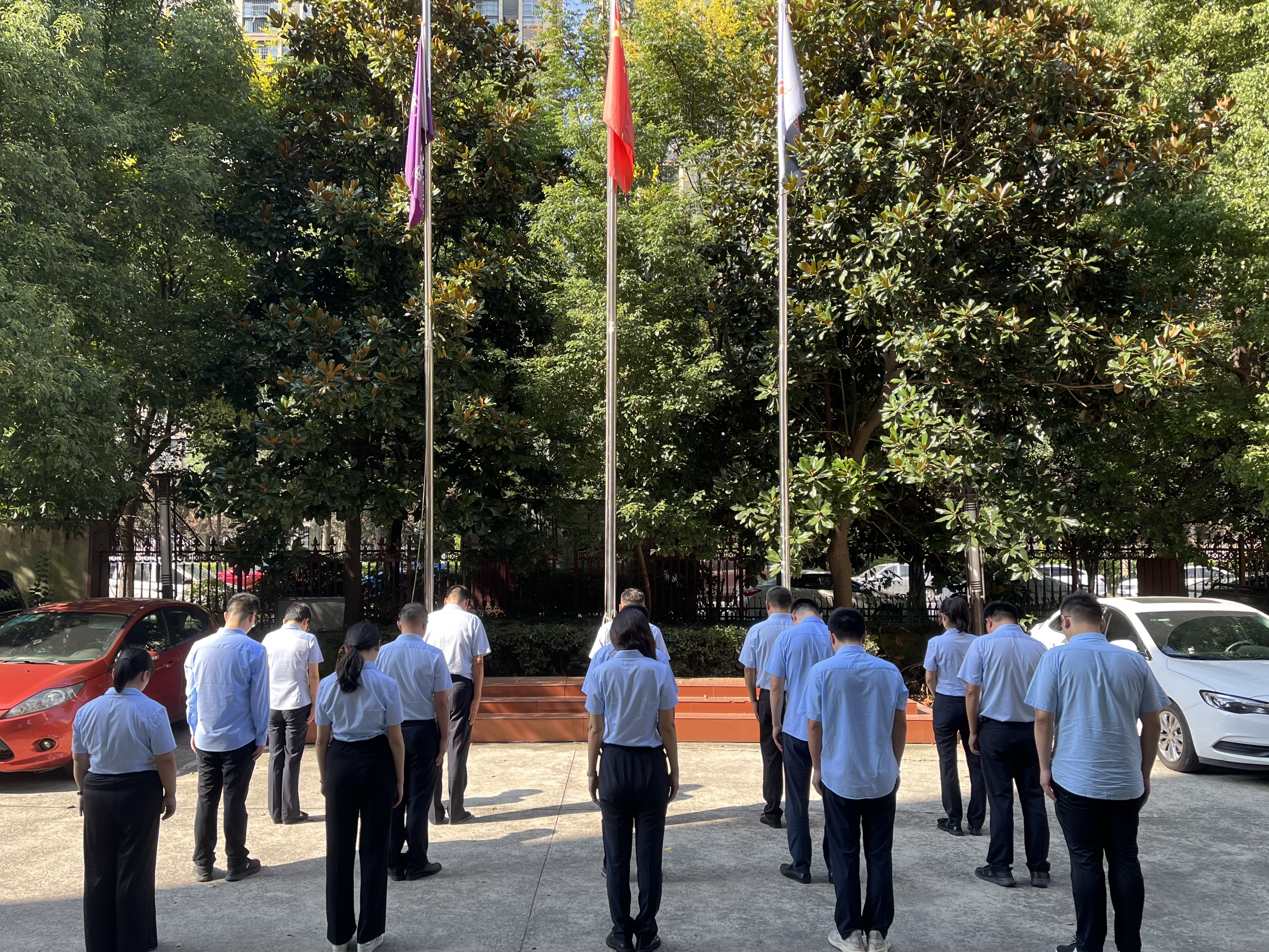 在旗臺(tái)廣場(chǎng)前,機(jī)關(guān)全體人員肅立、脫帽,在莊嚴(yán)凝重的氣氛中,為革命先輩和“九一八事變”中犧牲的同胞默哀3分鐘,以表達(dá)對(duì)革命先烈的崇高敬意和無限哀思。