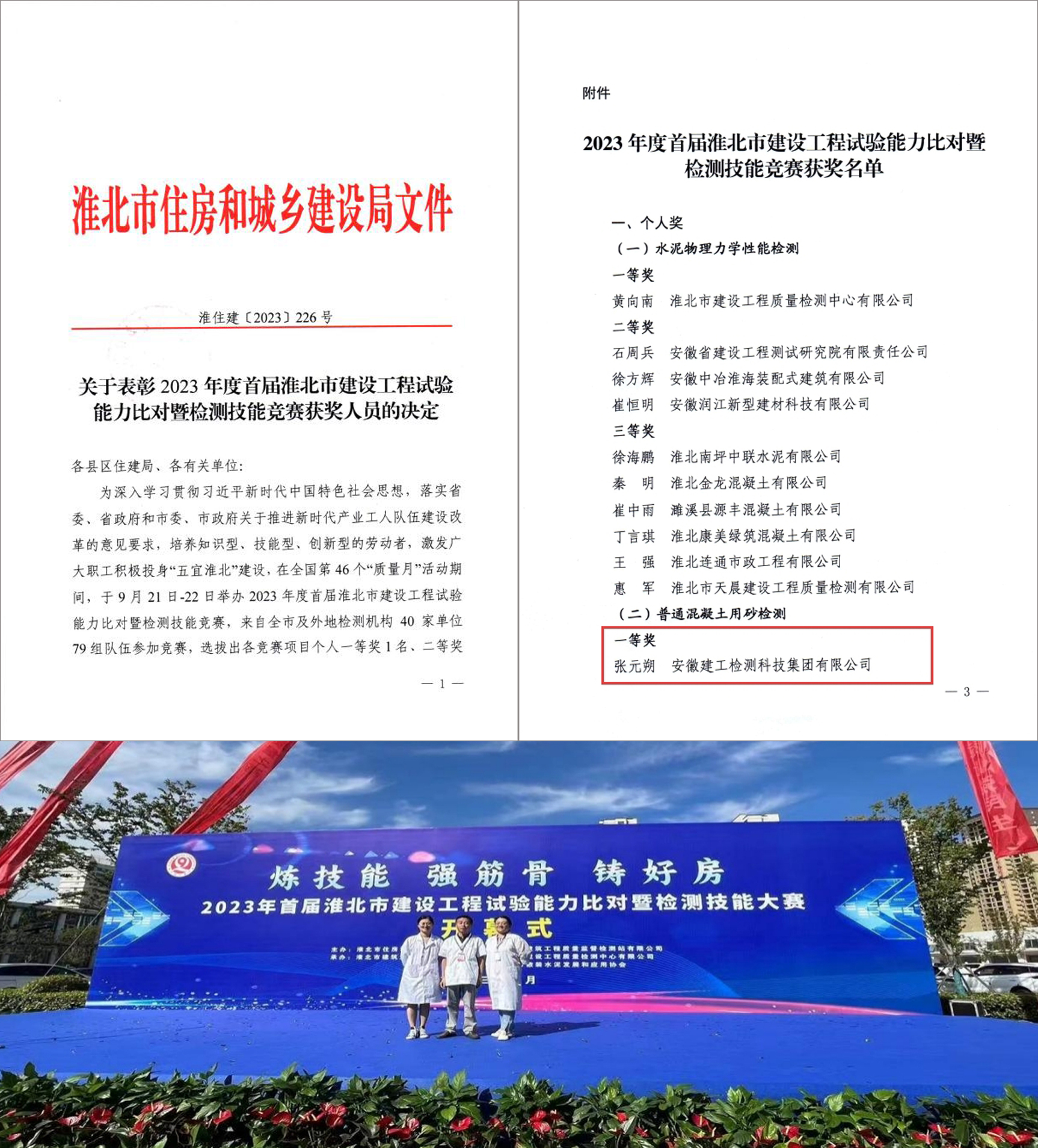 喜訊!建工檢測員工榮獲首屆淮北市建設(shè)工程試驗能力比對暨檢測技能競賽個人一等獎