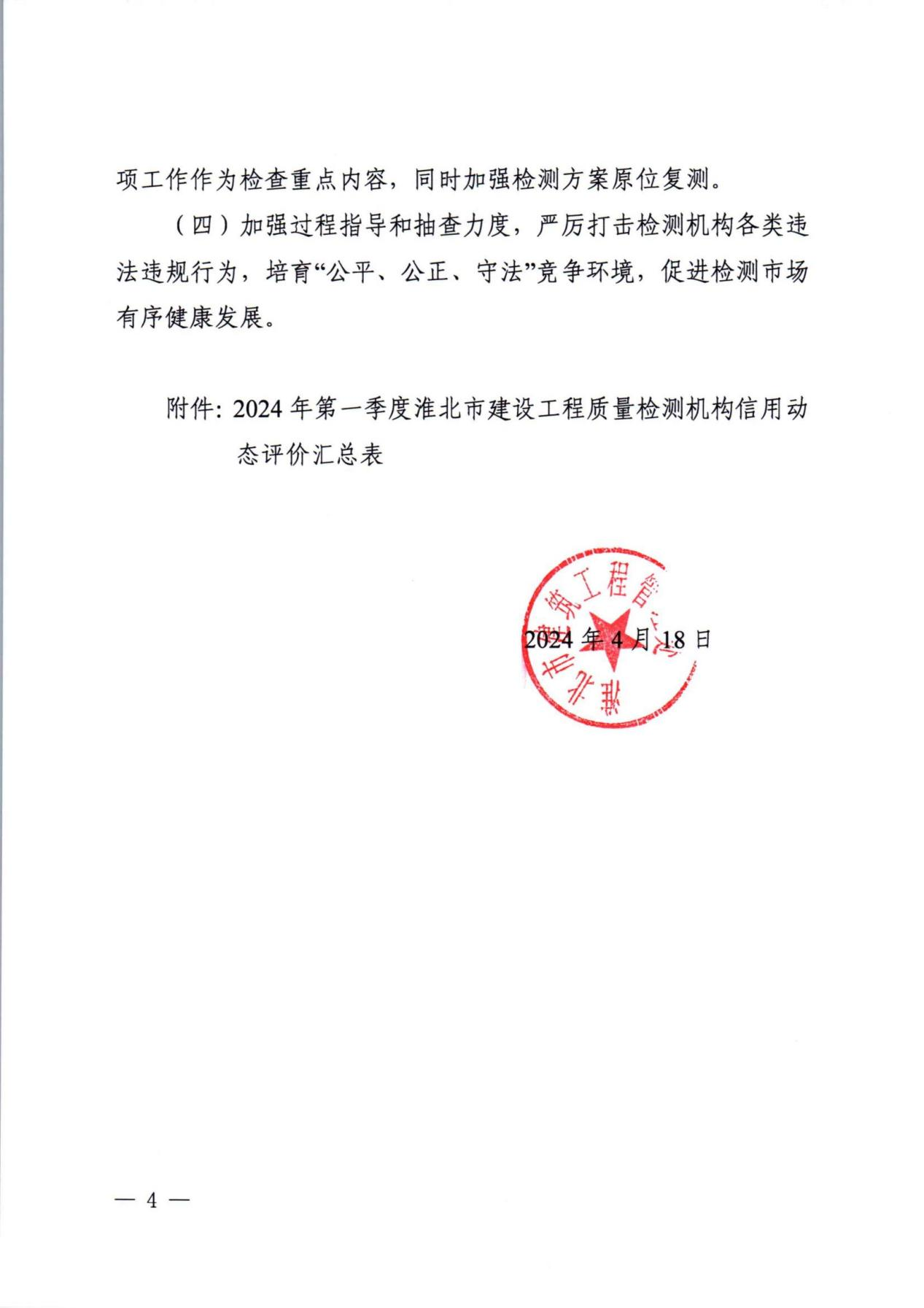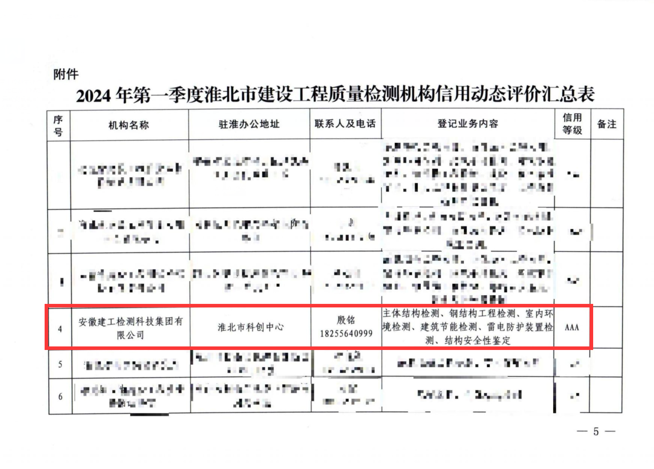 4月18日,淮北市住建局建設(shè)工程管理處公布了淮北市建設(shè)工程質(zhì)量檢測機構(gòu)第一季度監(jiān)督檢查結(jié)果,安徽建工檢測科技集團獲得“AAA”級(最高等級)信用評價,這說明建工檢測在淮北的技術(shù)力量和檢測成績得到了主管部門高度的肯定和認(rèn)可。