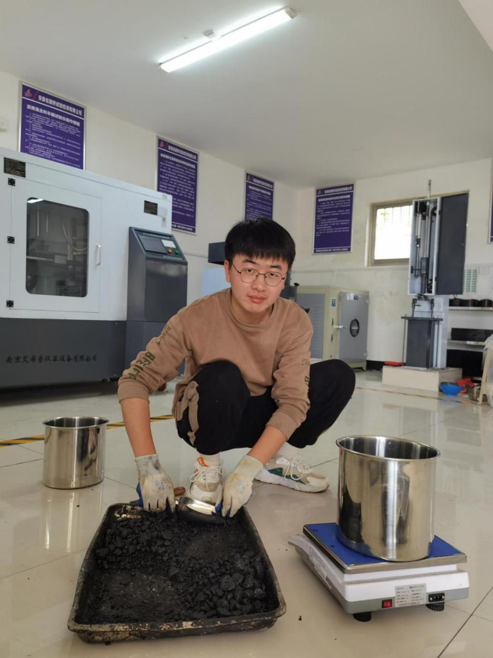 單宏飛,宣涇高速一期中心試驗(yàn)室助理檢測(cè)師,榮獲2023年度建工檢測(cè)集團(tuán)“優(yōu)秀新員工”稱號(hào),正在用真空法對(duì)瀝青混合料理論最大相對(duì)密度進(jìn)行檢測(cè),瀝青混合料理論最大相對(duì)密度是瀝青混合料施工控制的一個(gè)重要參數(shù),是計(jì)算瀝青混合料空隙率、礦料間隙率、瀝青飽和度等體積指標(biāo)的基本參數(shù),該參數(shù)的確定準(zhǔn)確與否,將直接影響到混合料配合比設(shè)計(jì)結(jié)果和瀝青路面的使用性能。