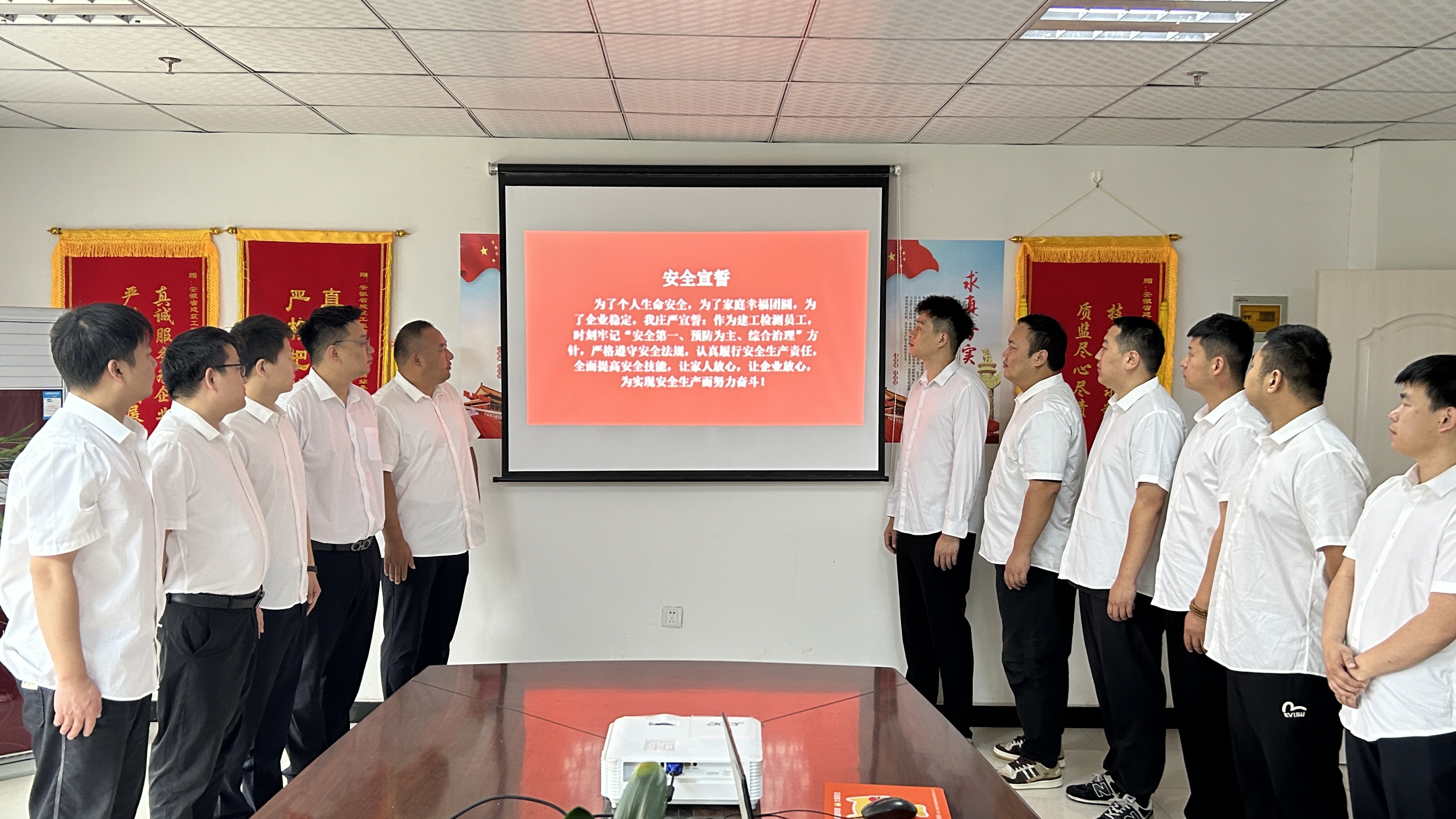 啟動儀式上,阜陽分站黨支部書記、站長屈俊云傳達(dá)并帶領(lǐng)分站員工學(xué)習(xí)了建工檢測2024年“安全生產(chǎn)月”啟動會會議精神,集中觀看了“2024年全國安全生產(chǎn)月公益宣傳片”及《安全生產(chǎn)責(zé)任在肩》等警示教育片。隨后,與會全體人員共同進(jìn)行安全宣誓,將時(shí)刻緊繃安全生產(chǎn)這根弦,做好自己的第一責(zé)任人。