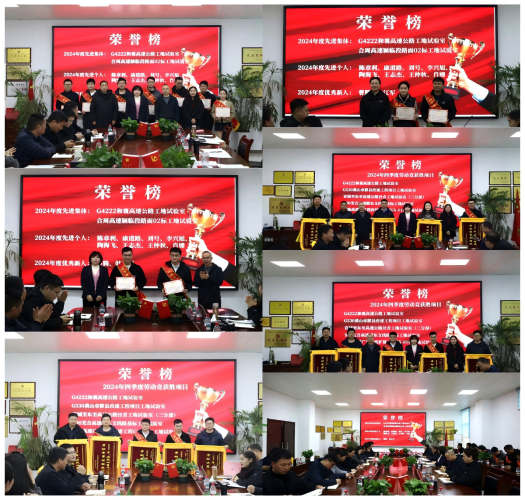 會議對路港通2024年度“先進集體”“先進個人”“優(yōu)秀新人”和“決戰(zhàn)四季度勞動競賽”優(yōu)勝工地試驗室進行了表彰。