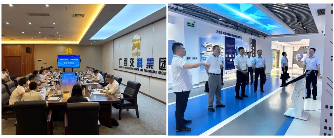 ▲與廣西交科集團(tuán)黨委委員、副總經(jīng)理、總工程師熊劍平座談交流,并參觀企業(yè)展廳。