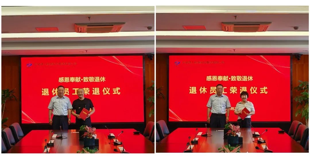 歲月鎏金,情暖桑榆。為表達(dá)對退休職工的關(guān)心關(guān)愛,增強(qiáng)退休職工榮譽(yù)感、幸福感和歸屬感,6月24日,公司為職工謝政、孟巖舉辦了光榮退休儀式。
