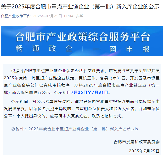 喜報(bào)!天筑智檢公司成功入庫2025年度合肥市重點(diǎn)產(chǎn)業(yè)鏈企業(yè)