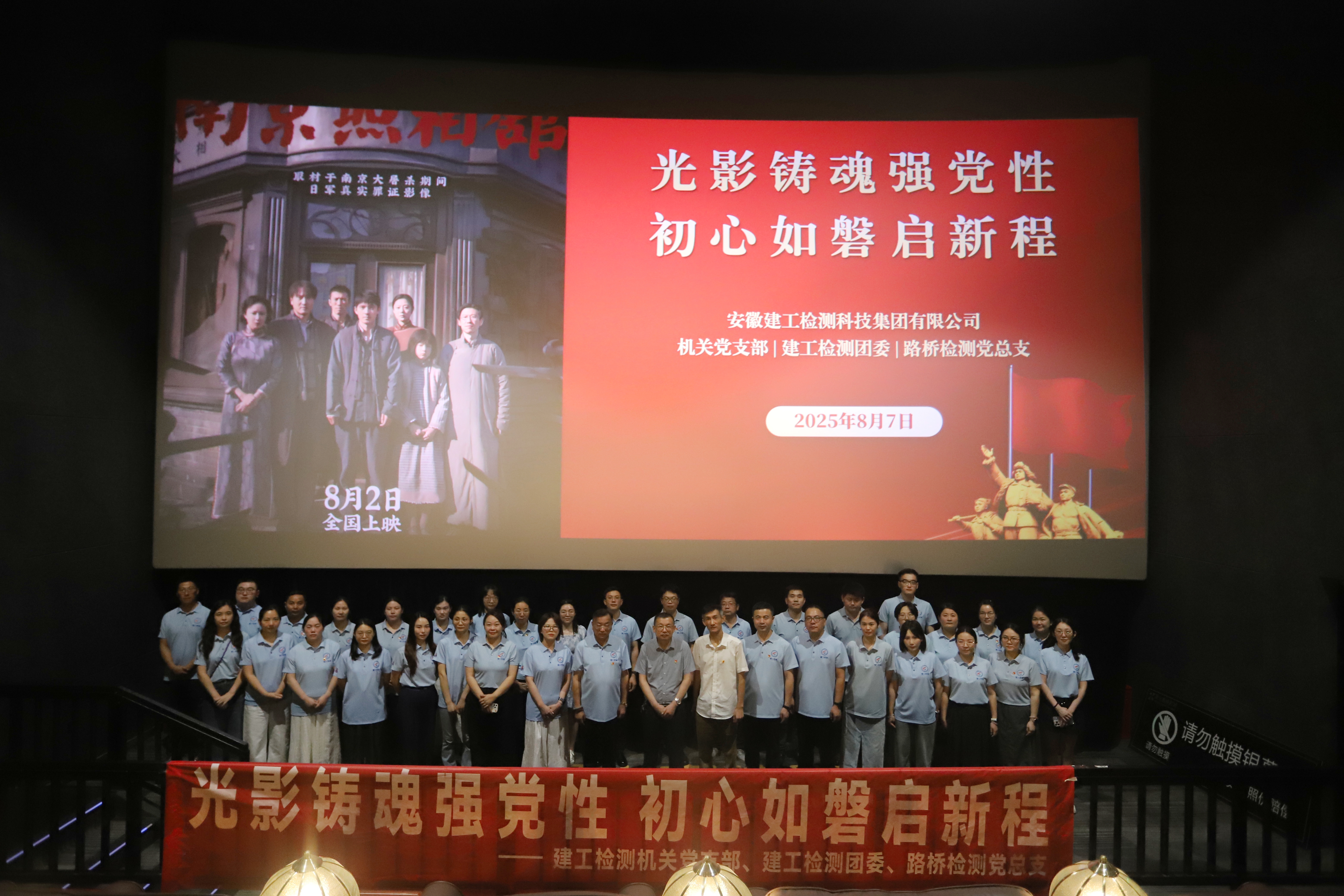 8月7日,建工檢測公司機(jī)關(guān)黨支部、公司團(tuán)委、路橋檢測黨總支開展“光影鑄魂強(qiáng)黨性,初心如磐啟新程”紅色觀影主題黨日活動,共同觀看歷史題材影片《南京照相館》,公司黨員、團(tuán)員及民主黨派代表參加。