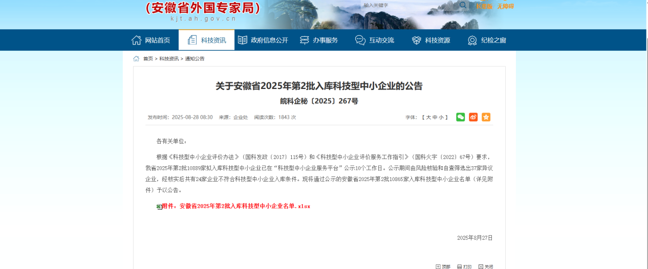 喜報(bào)!天筑智檢再次入選安徽省科技型中小企業(yè)