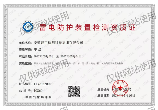 雷電防護(hù)裝置檢測資質(zhì)證書