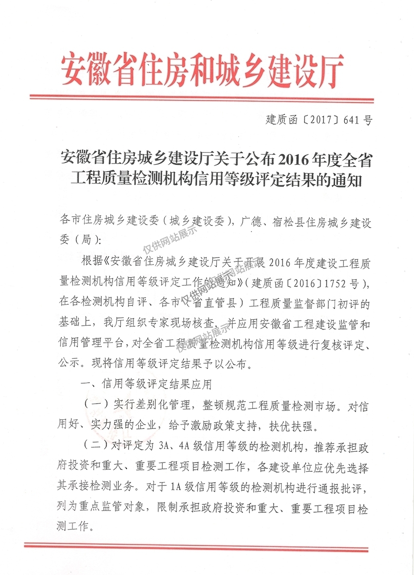 工程質(zhì)量檢測機構(gòu)信用等級評定4A