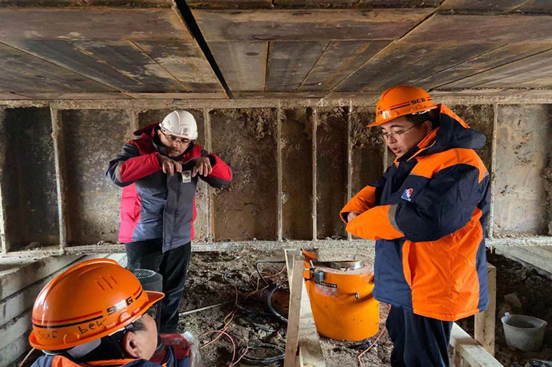 二站巖土分院作為承接單位,對該項目高度重視,前期與上海建工就技術(shù)問題進行了充分溝通,制定了全面而細致的檢測方案,在當?shù)刂谱髁虽摿骸⑴渲氐却笮驮O(shè)備,以確保檢測現(xiàn)場能夠順利實施,同時于2019年12月外派強光玉、陳明兩位優(yōu)秀項目經(jīng)理長駐現(xiàn)場提供專業(yè)檢測服務(wù)。同志們克服氣候嚴寒、語言不通、水土不服的困難,不僅順利啟動了檢測工作,而且一個月內(nèi)完成了總工作量的50%,給總包單位節(jié)約了工期,以嚴謹?shù)墓ぷ髯黠L和優(yōu)質(zhì)的服務(wù)展現(xiàn)了安徽建科質(zhì)檢二站的風采,得到了現(xiàn)場各方主體單位的一致好評,樹立了安徽建科人敬業(yè)奉獻、艱苦奮斗的良好職業(yè)形象。