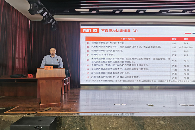 為落實院七屆五次職代會精神,引導(dǎo)員工增強職業(yè)道德意識,恪守“誠信為本、操守為重”的行為準(zhǔn)則。4月30日上午,二站在23樓大會議室舉辦職業(yè)道德與行為準(zhǔn)則專題講座。二站各檢測部門負責(zé)人、項目負責(zé)人及三年內(nèi)入職員工等110余人參加培訓(xùn)。二站黨總支書記、站長劉林軍出席培訓(xùn)會并作動員講話。培訓(xùn)會由院人力資源部部長徐文正主持。