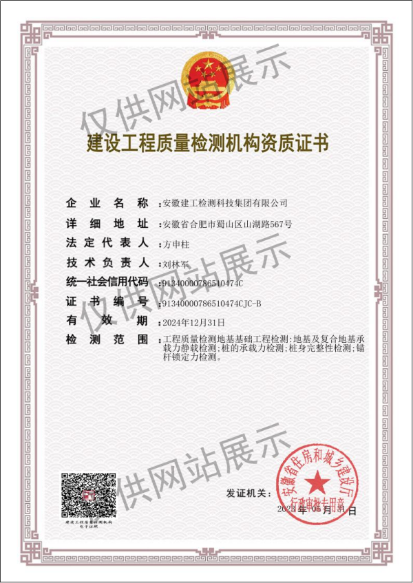 建設(shè)工程質(zhì)量檢測機(jī)構(gòu)資質(zhì)證書(地基基礎(chǔ))