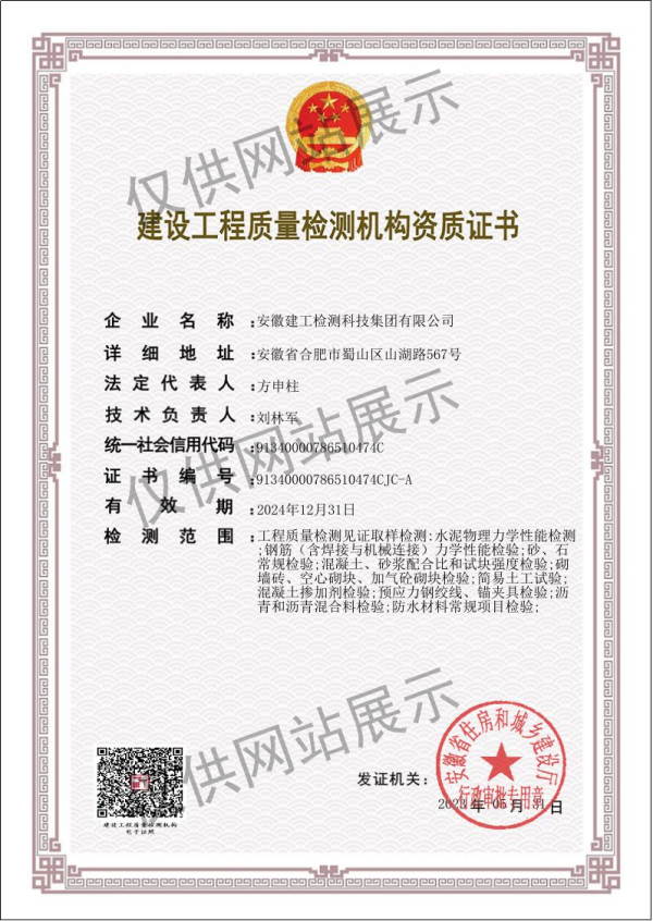建設(shè)工程質(zhì)量檢測機(jī)構(gòu)資質(zhì)證書(建筑幕墻)