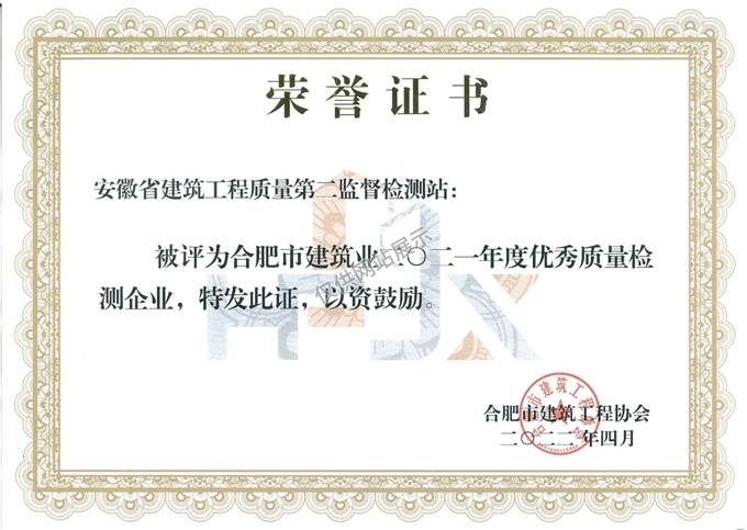合肥市建筑業(yè)二0二一年度優(yōu)秀質(zhì)量檢測(cè)企業(yè)